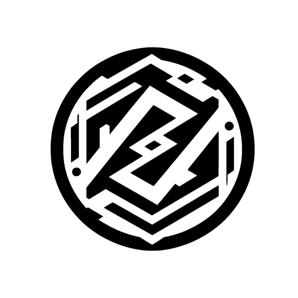 Geometric Black and White Circular Symbol with Interlocking Shapes, Clean Lines, and a Modern Minimalist Aesthetic on a Plain White Background. vector