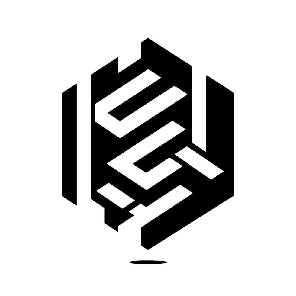 Isometric Black and White Geometric with Interlocking Shapes, Shadow, and Architectural Influence, Set Against White Background Free Vector