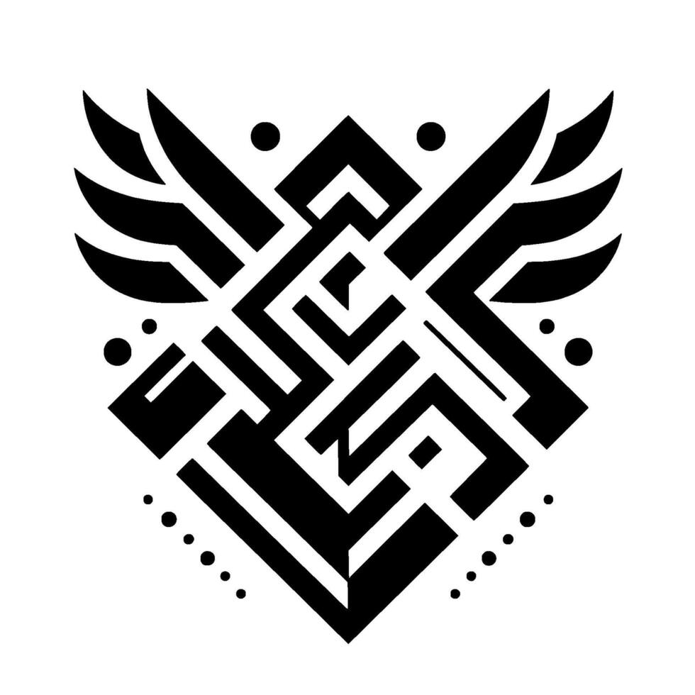 Geometric Black and White Design Abstract, Symmetrical, Winged Symbol, Featuring Dot Accents and Angular Forms vector