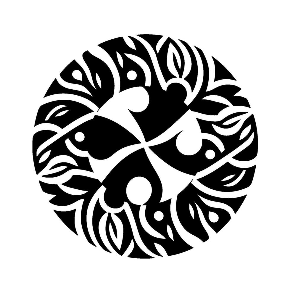 Intricate Black and White Circular Featuring Organic, Symmetrical Patterns Resembling Leaves and Interlocking Shapes on White Background. vector