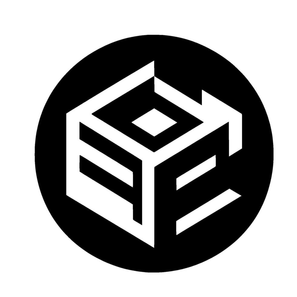 Isometric Cube Logo A geometric of a D cube rendered in black and white, set within a black circular frame on a white backdrop. Free Vector