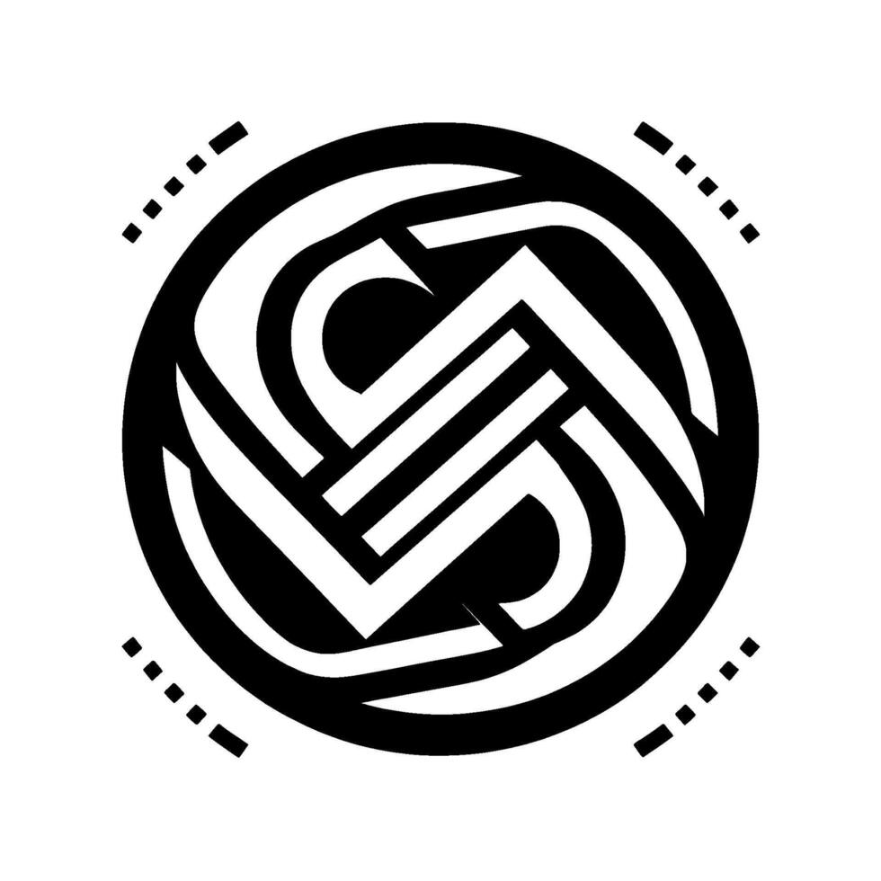 Abstract monochrome circular with interwoven lines, subtle shading, and minimalist featuring dashed elements. vector