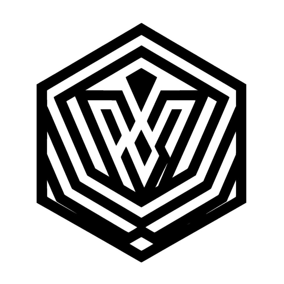Geometric Black and White Hexagon with Interlocking Shapes, Suggesting a Symbol, Logo, or Abstract Against a Clean White Backdrop. vector