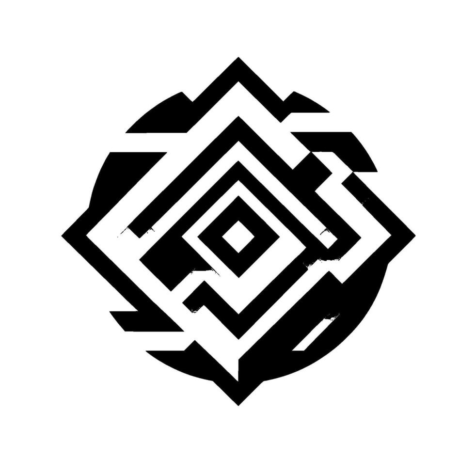 Geometric Monochrome Design Angular, Black and White Abstract Form with Square within a Circle on a Minimalist Background. vector