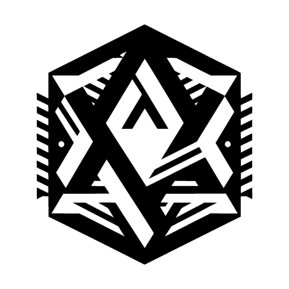 Hexagonal Monochrome Graphic Symmetrical Abstract with Bold Black Shapes, White Negative Space, Geometric Pattern, and Style. vector