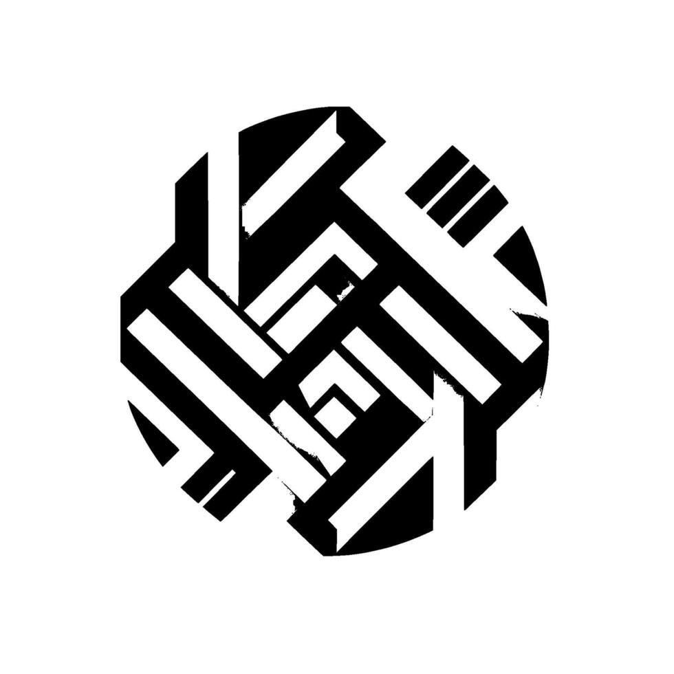 Abstract D Orb Geometric Black White Interlocking Shapes, Striking Contrast Shadow Play on a White Background. vector