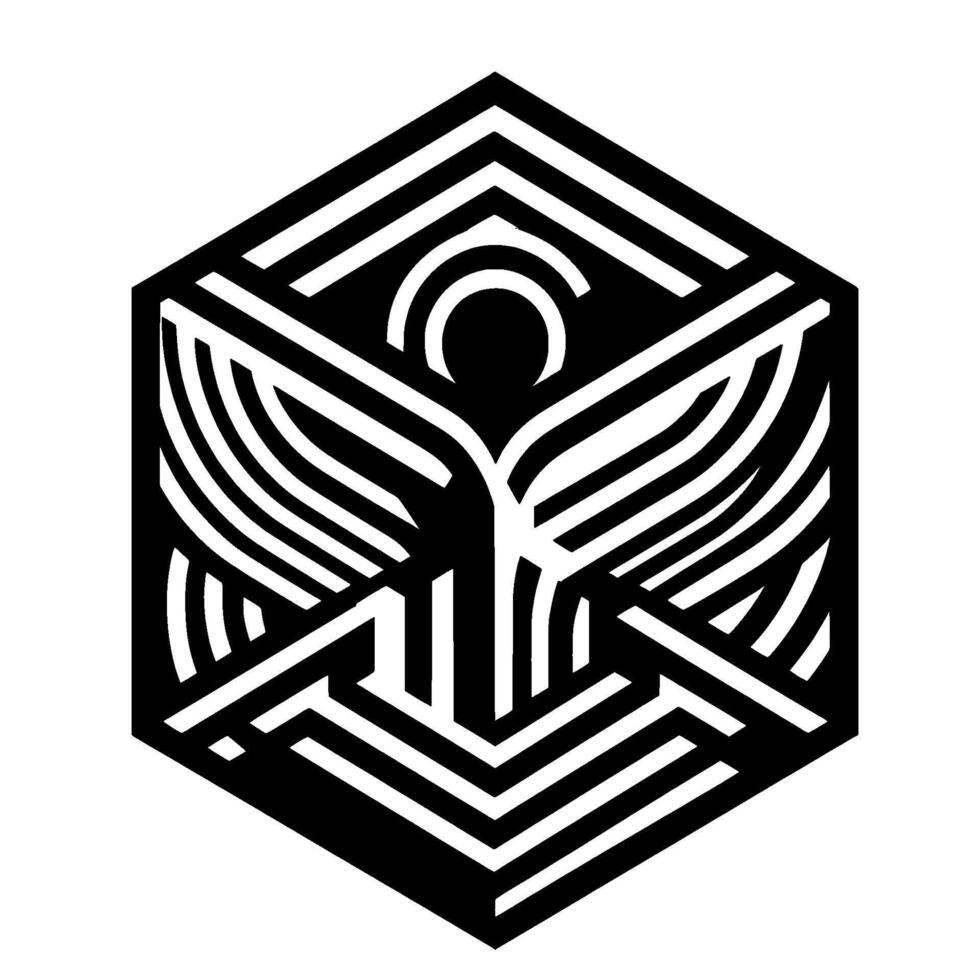Geometric Cube with Stylized Figure, Featuring Black and White Striped Pattern and Circular Head Depiction. vector
