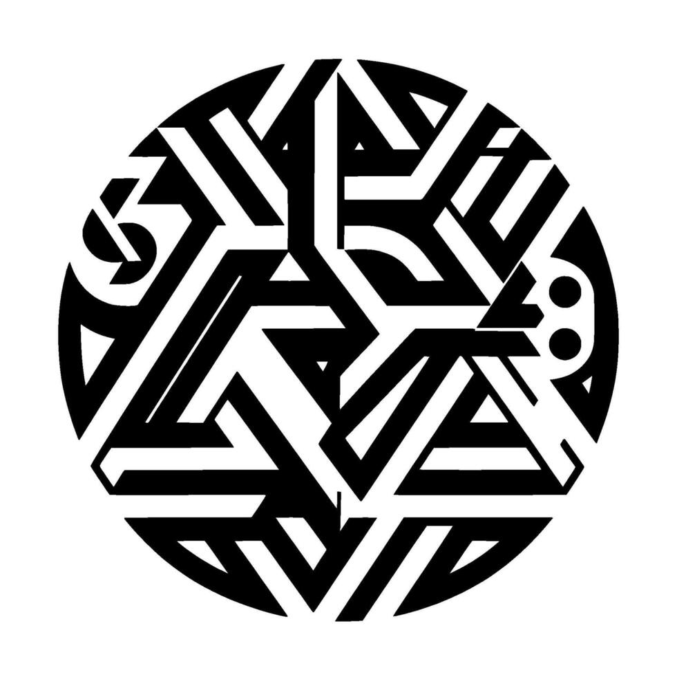 Geometric Black and White Circular with Abstract, Interlocking Shapes, creating a visually complex and intriguing pattern. vector