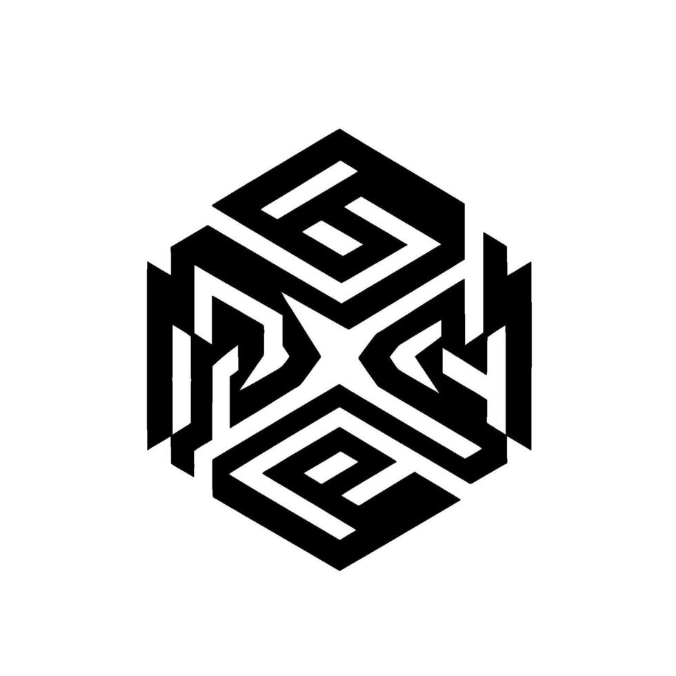 Geometric abstract hexagonal of interconnected black and grey ribbon patterns on a white background, showcasing depth and a modern aesthetic. vector
