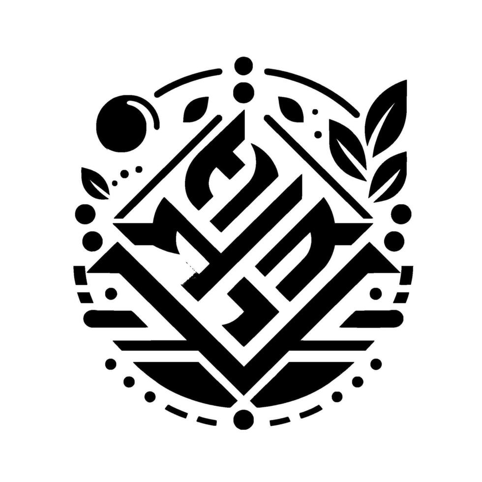 Abstract Geometric Emblem A Circular Black and White with Leaf Elements and Interlocking Shapes. vector