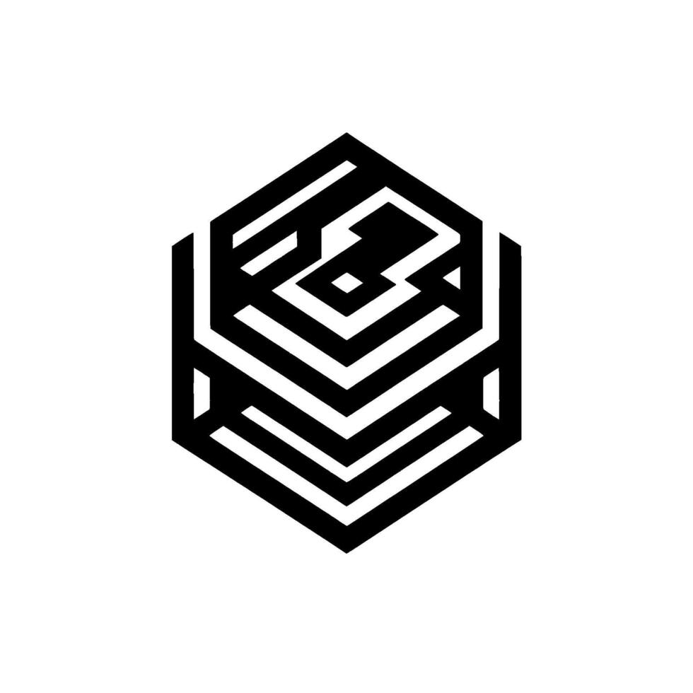 Abstract Hexagon with Nested Geometric Labyrinth Pattern in High Contrast Black and White vector