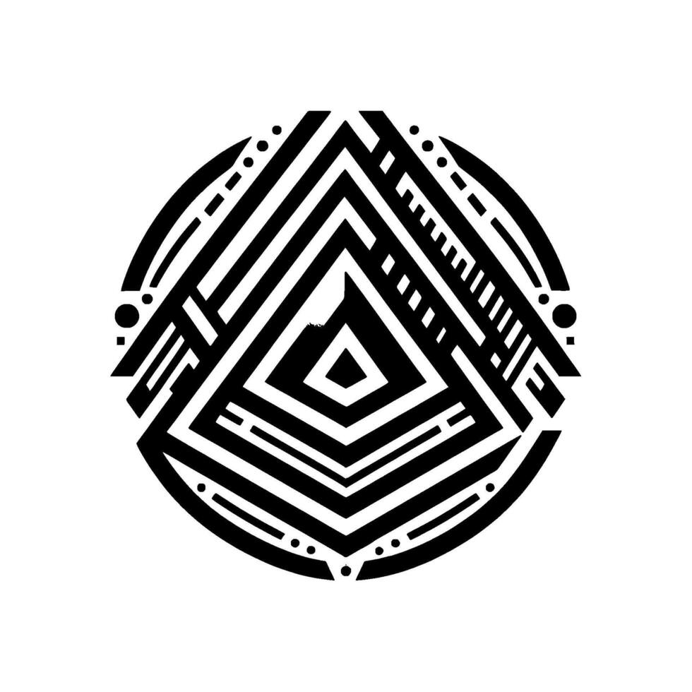 Geometric Black White Mandala A Circular Composition Featuring Concentric Triangular Patterns and Radial Lines on White Background. vector