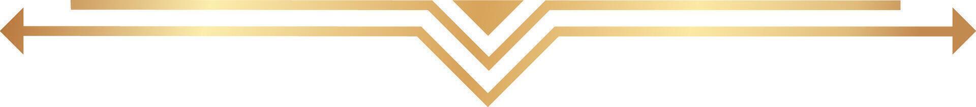 Two golden arrows pointing in opposite directions with a central geometric decoration composed of triangles forming a V shape, isolated on a white background Pro Vector