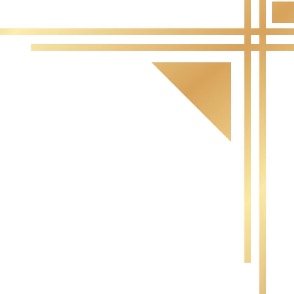 Elegant golden geometric frame decorating the top right corner with a triangle, lines and a square, creating a sophisticated and modern design on a white background Pro Vector