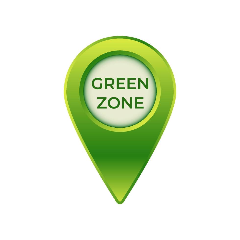 Green zone icon shaped like a location pin with gradient green and bold text design Pro Vector