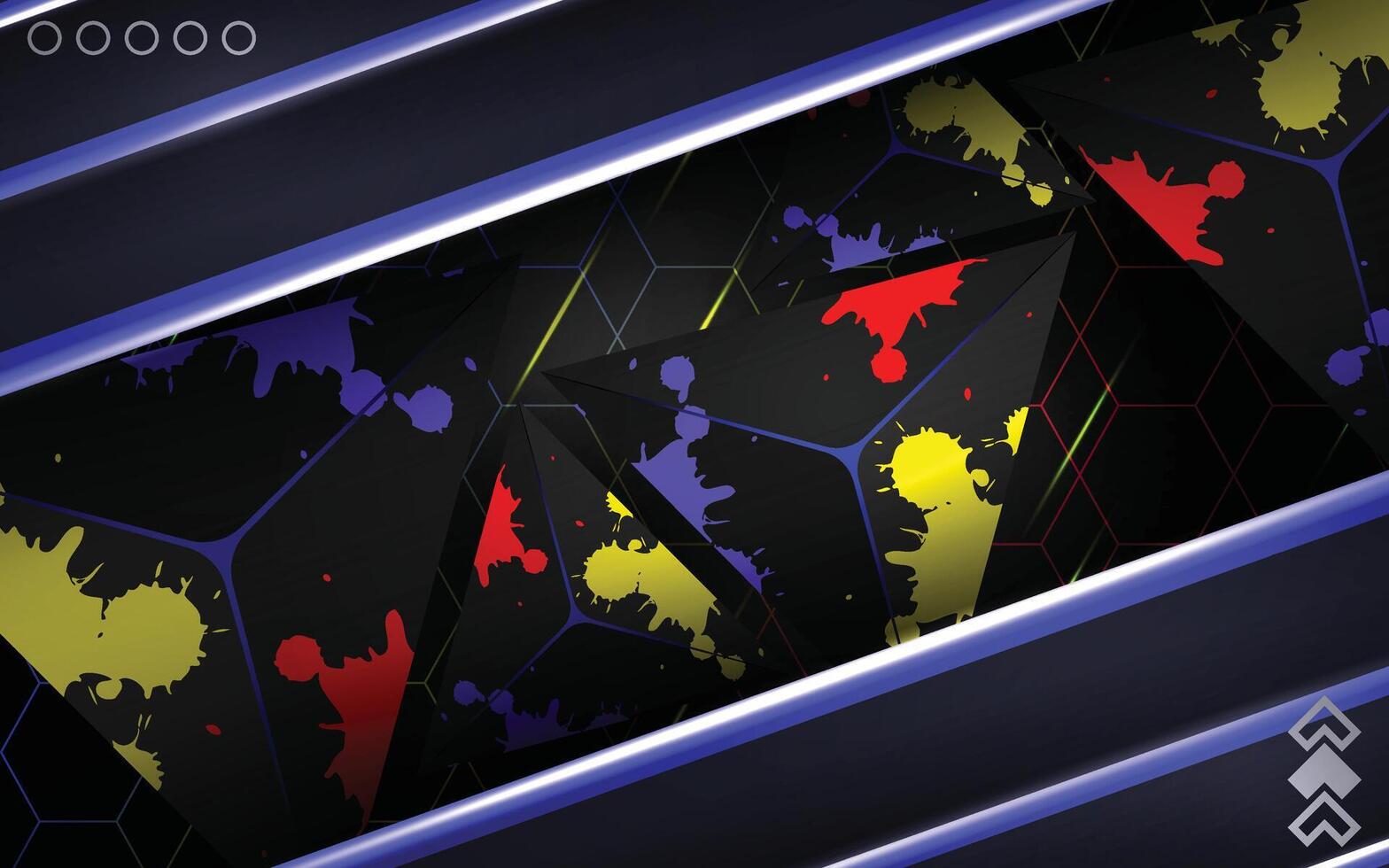 Blue light stripes background with dark 3d triangle object Pro Vector