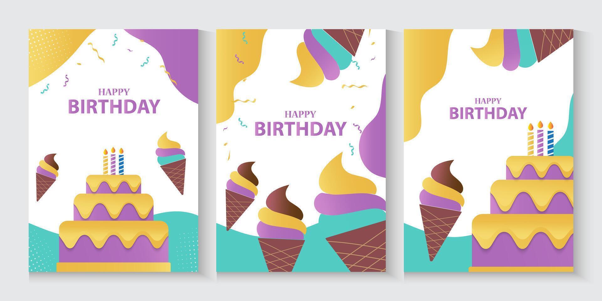 set of birthday banners with ice cream and cake and copy space for text Pro Vector