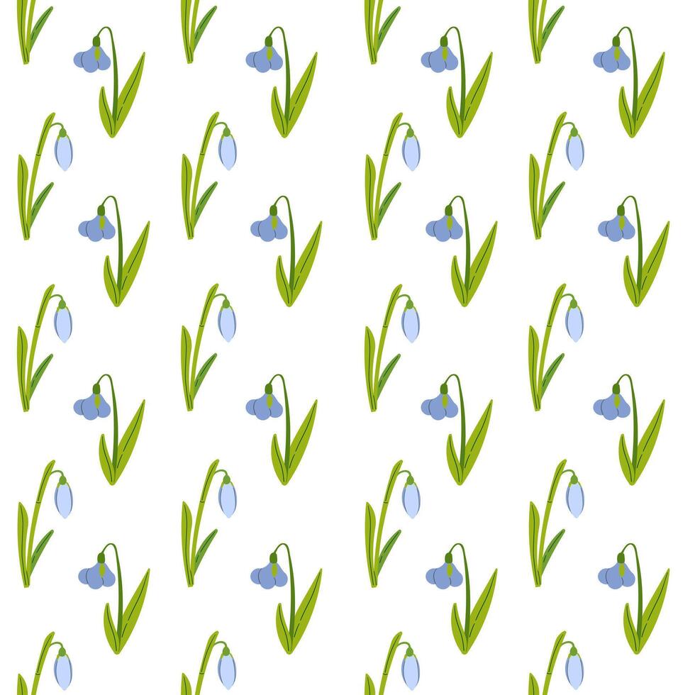 Snowdrops flowet seamless pattern on white background. Spring. Awakening. Hand drawn illustration on white for fabric and paper design.ation Pro Vector