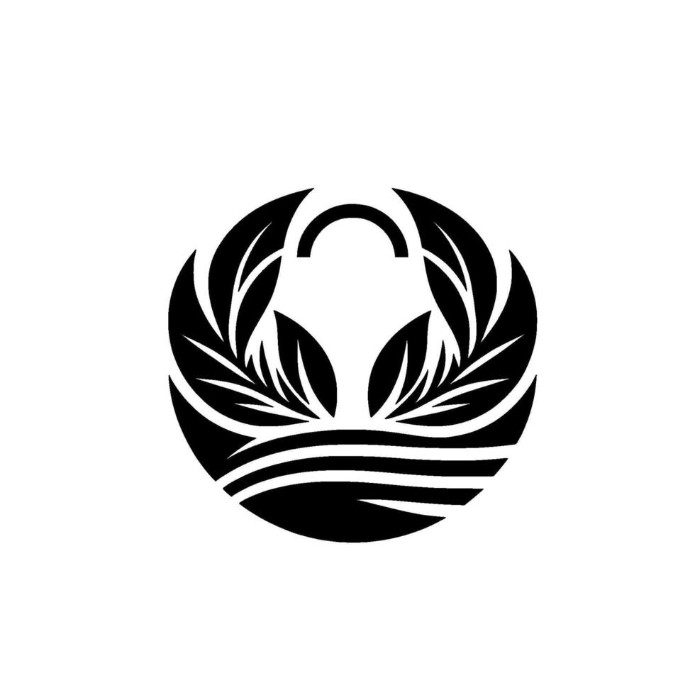 Minimalist Black and White Emblem Circular Featuring Leafy Branches Over Watery Lines, with an arched Shape and an open shape above. vector