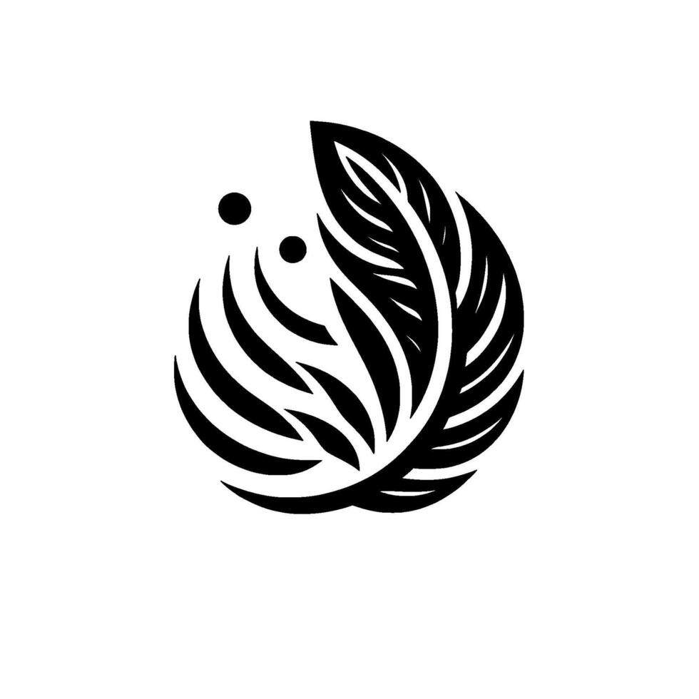 Abstract Black and White Feather with Curved Elements and Dots on a White Background, Symbolic Composition. vector