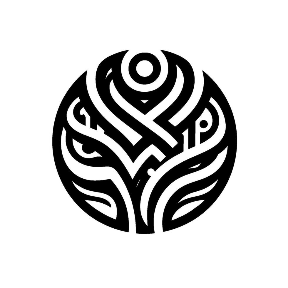 Intricate Circular Black and White Pattern Suggesting Eyes and Floral Elements in a Symmetrical and Abstract Composition. vector