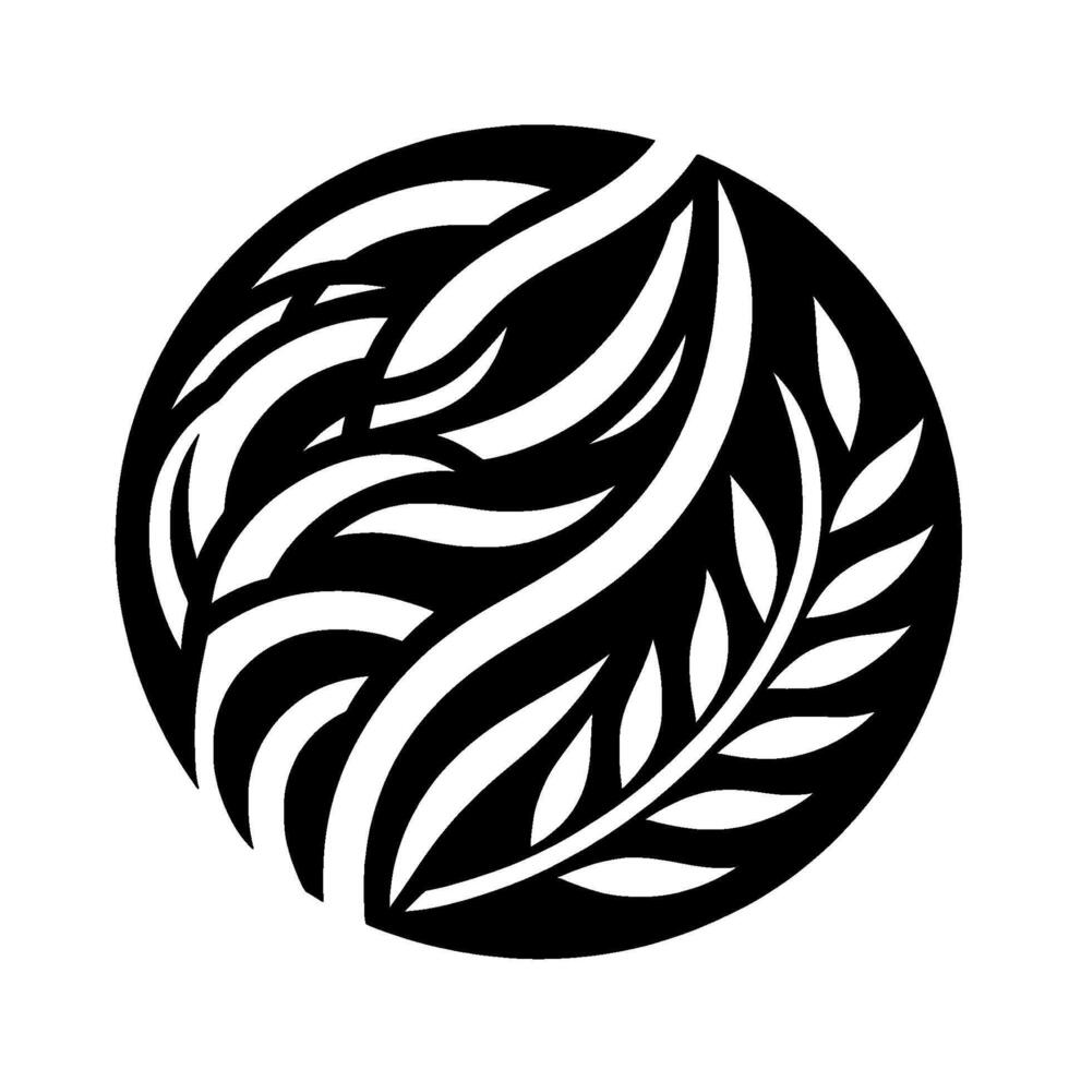 Bold Black and White Circular Featuring Flowing, Abstract Organic Forms and Leafy Sprig Element. vector