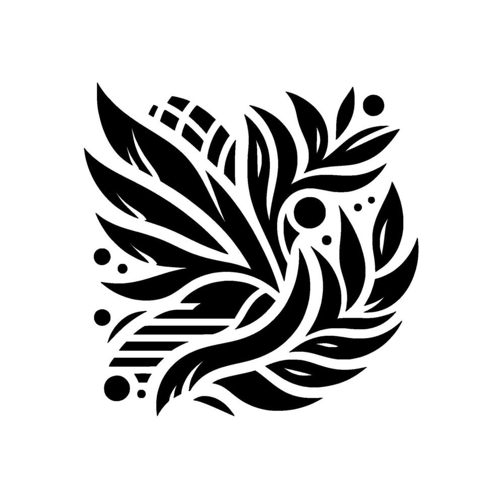 Abstract Black White Floral Pattern with Leaf, Dot, and Stripe Elements on a White Background, Symmetrical . vector