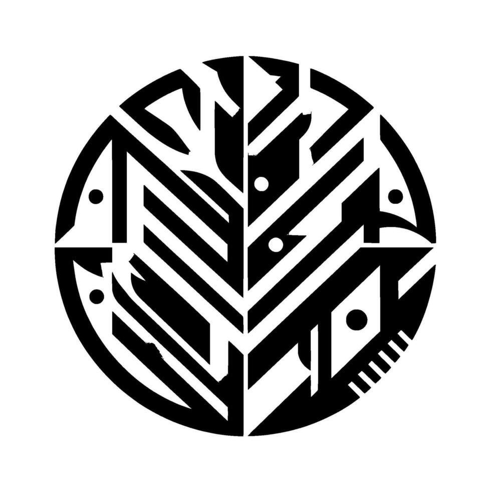 Black and White Geometric Circular Featuring Abstract LeafLike and Segmented Forms, Decorative and Modern. vector