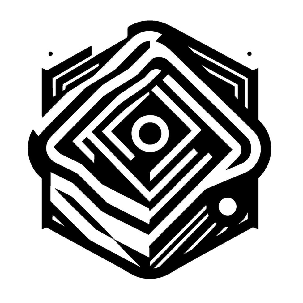 Geometric Black and White Hexagon with Concentric Square and Circular Elements, Abstract . vector
