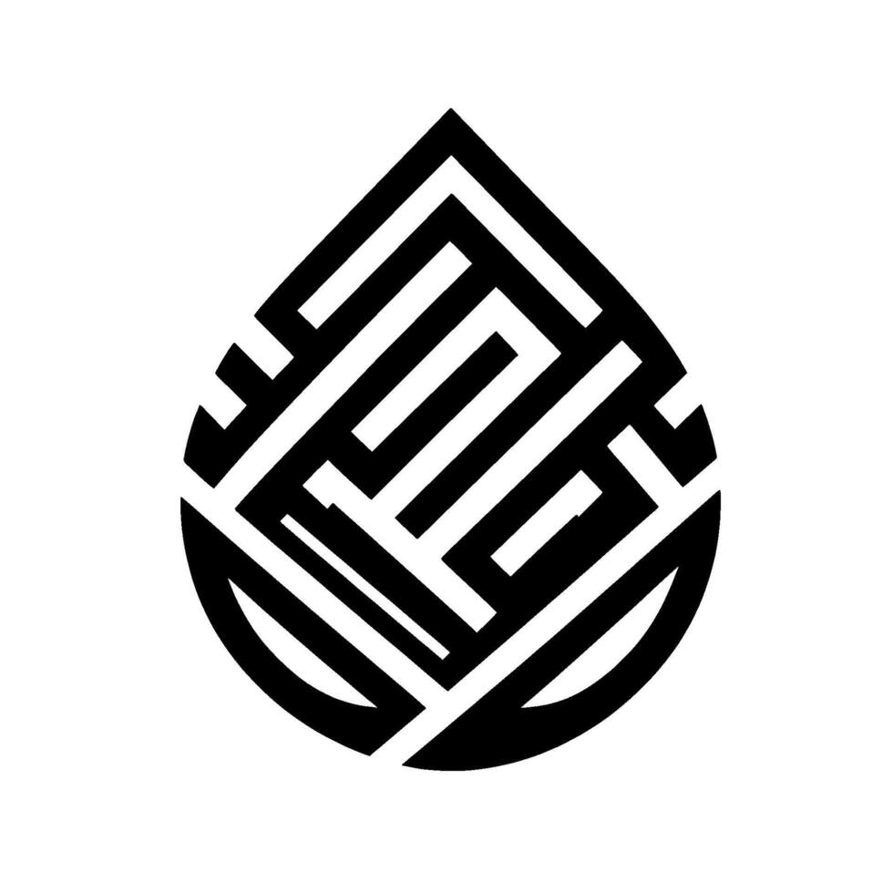 Abstract black and white tearshaped featuring a complex geometric pattern resembling a maze or circuit board. Pro Vector