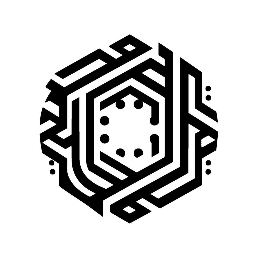 Geometric Hexagon Modern Black and White with Interlocking Lines, Dots, and a Central Hexagonal Void. vector