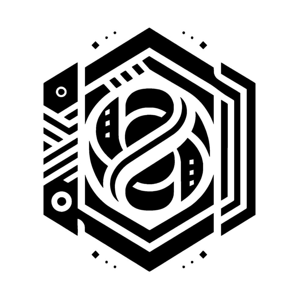 Geometric Black and White Hexagon with Abstract Intertwined Curves and Linear Elements, Dot Accents Free Vector