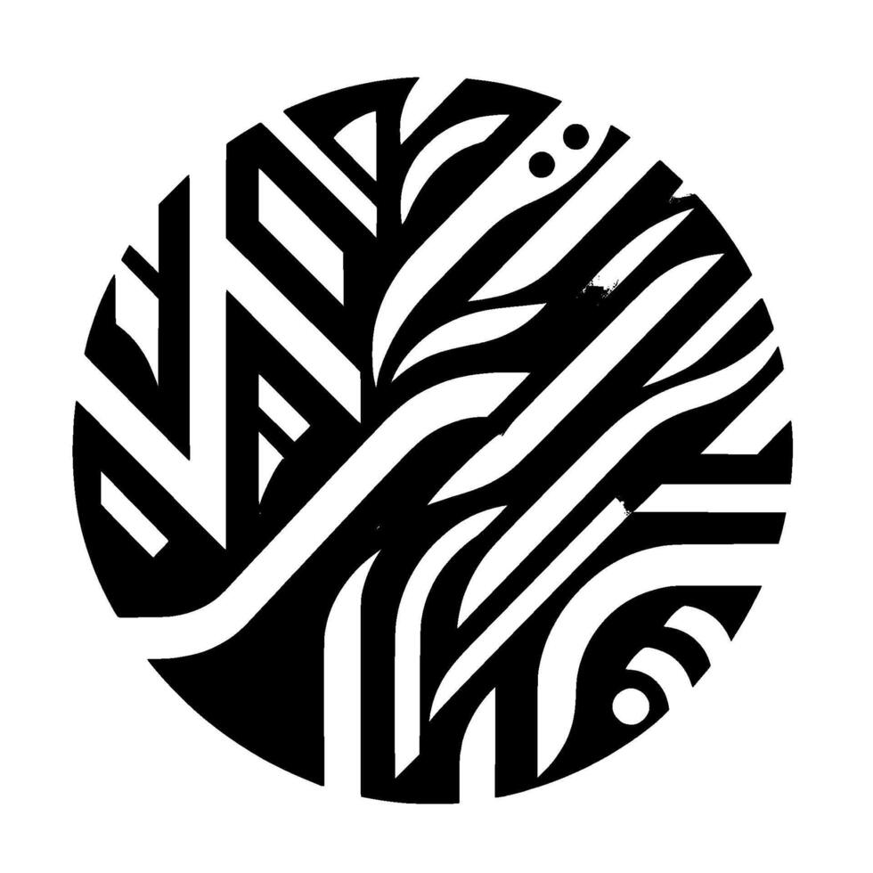 Geometric abstract of stylized organic forms within a black and white circular frame, creating visual depth and contrast. vector