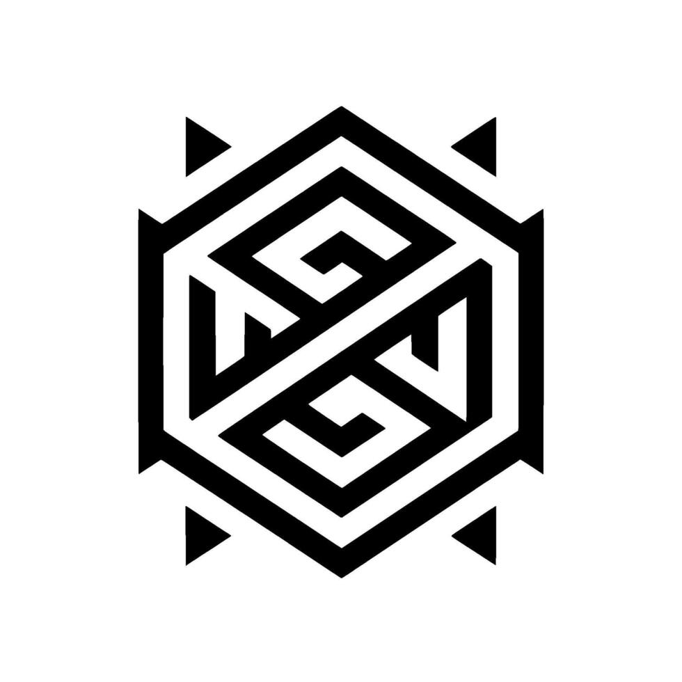 Geometric Black and White Hexagon with Intertwined Lines and Triangular Accents, Modern Minimalist vector