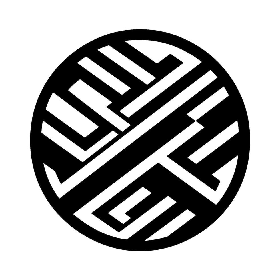 Circular abstract featuring a complex interwoven pattern of black and white geometric shapes, suggesting a stylized, modern emblem or . vector
