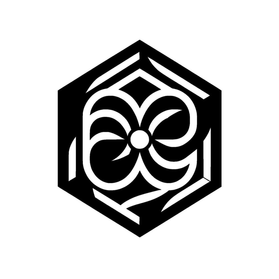 D Hexagonal Geometric with Stylized Floral Motif, Black and White, Perspective Rendering vector