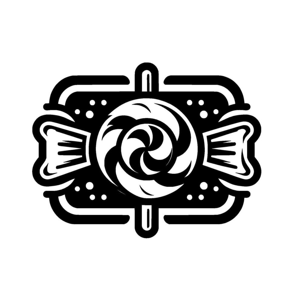 Bold Black and White of Swirl Lollipop Candy on Stick, Wrapped in rectangular frame, Dots, and Bows, Minimalist . Free Vector