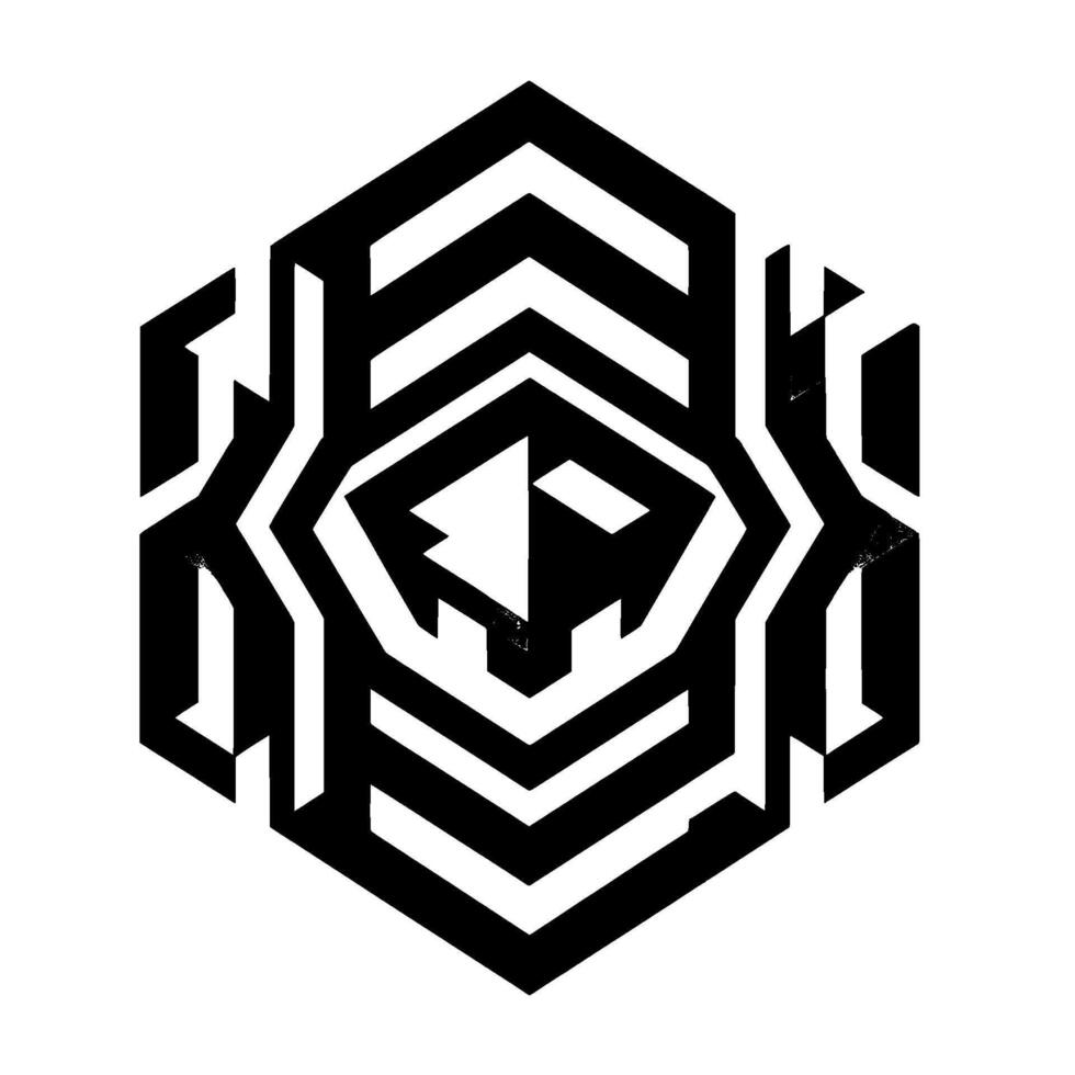 Geometric Illusion A monochromatic hexagon composed of layered abstract lines and shapes, creating an eyecatching optical effect. vector