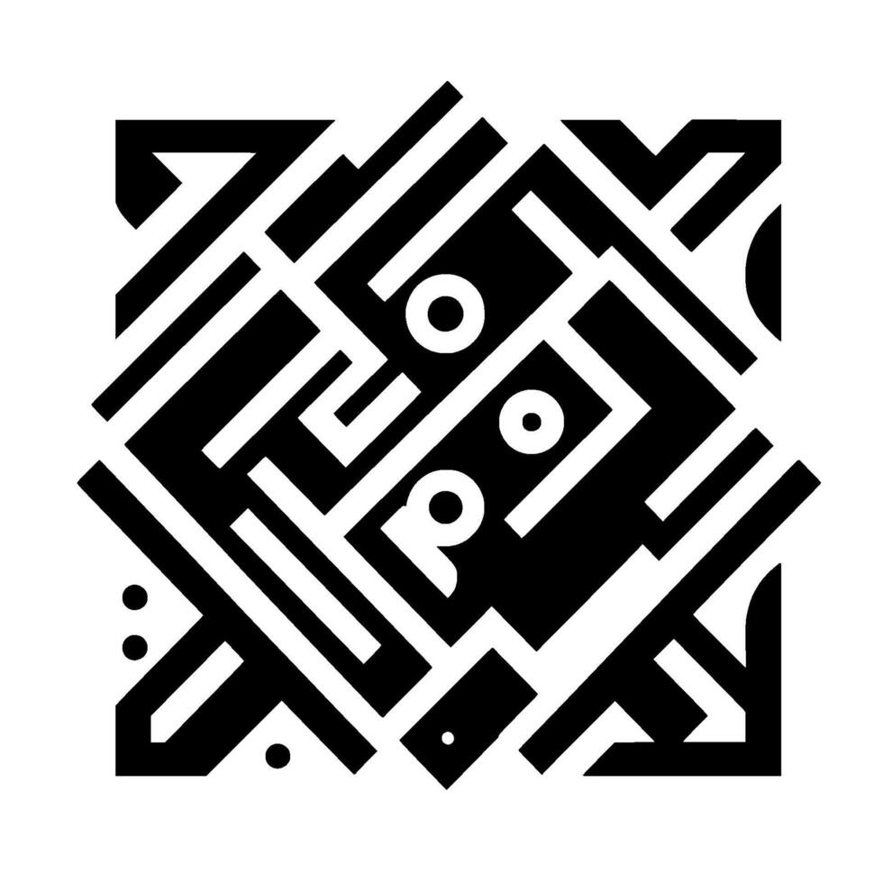 Symmetrical Black and White Geometric Composition with PO Letterforms Integrated into a Labyrinthine Abstract Pattern on a Square White Background. vector