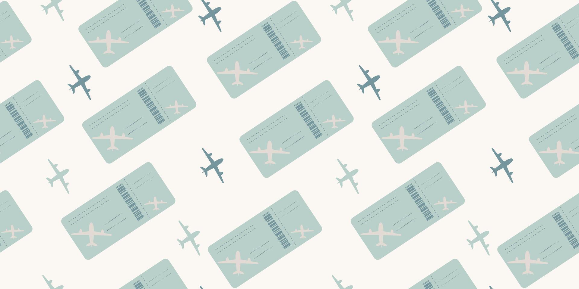 Seamless pattern of plane tickets. Airplane boarding pass in flat style. Illustration isolated on light background. Pro Vector