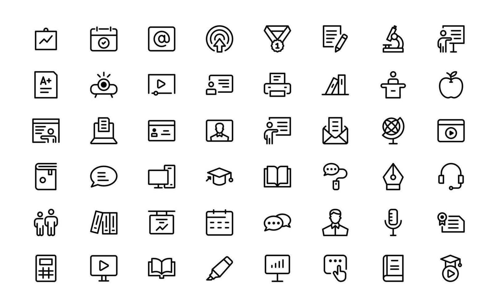 Education Icon Set bundle . Modern Icons for Learning, Teaching, Schools, and Digital Educational Tools Pro Vector