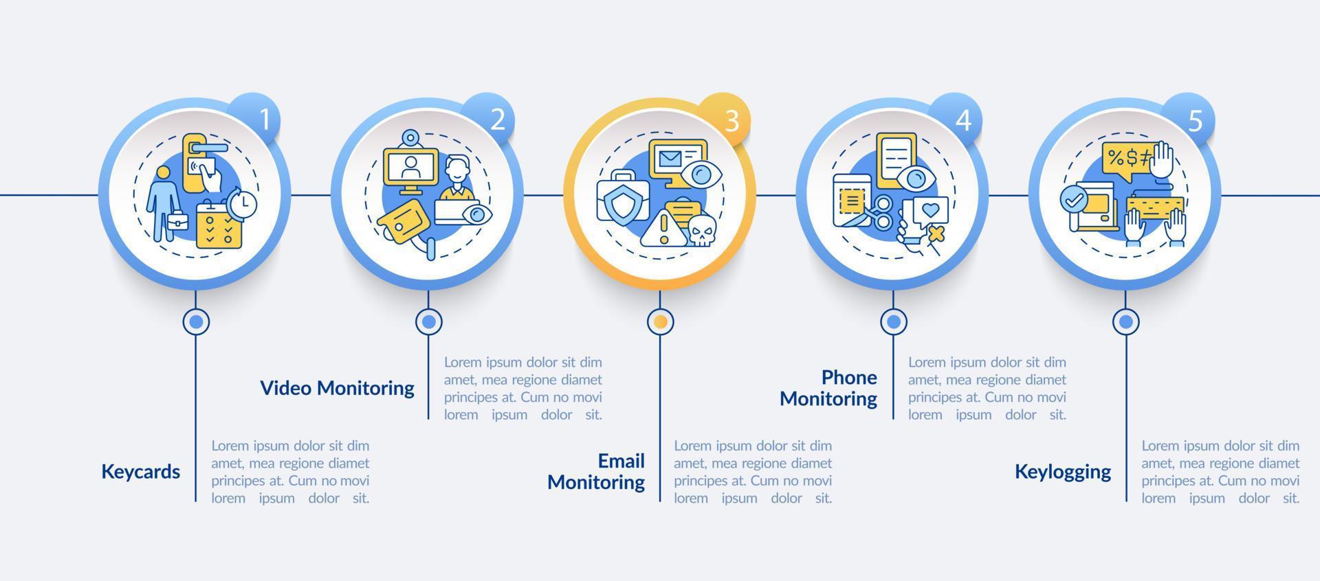 Employee monitoring methods vector infographic template. Work tracking presentation outline design elements. Data visualization with 5 step. Process timeline info chart. Workflow layout with line icon Pro Vector