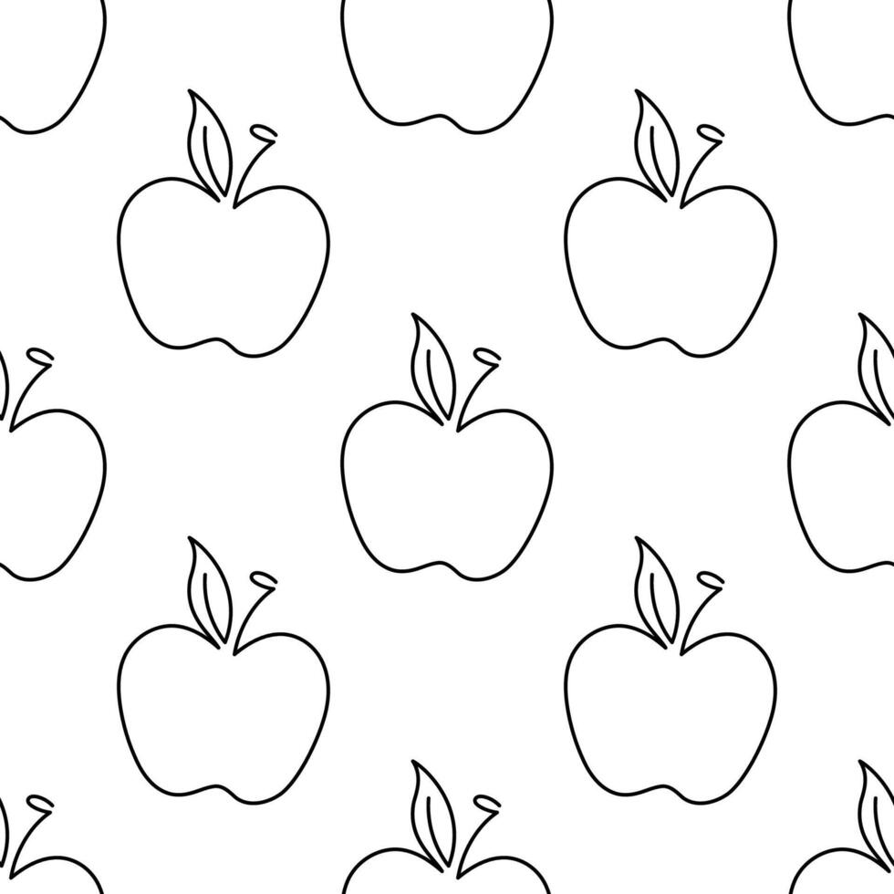 Apple fruit seamless pattern. Single line illustration. Line art Apple. One line Apple texture. Outline fruit isolated on white background. Textile, fabric, texture design Pro Vector