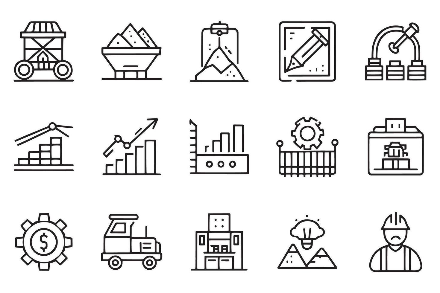 Mining processing statistic related editable stroke outline icon set flat illustration. Pro Vector