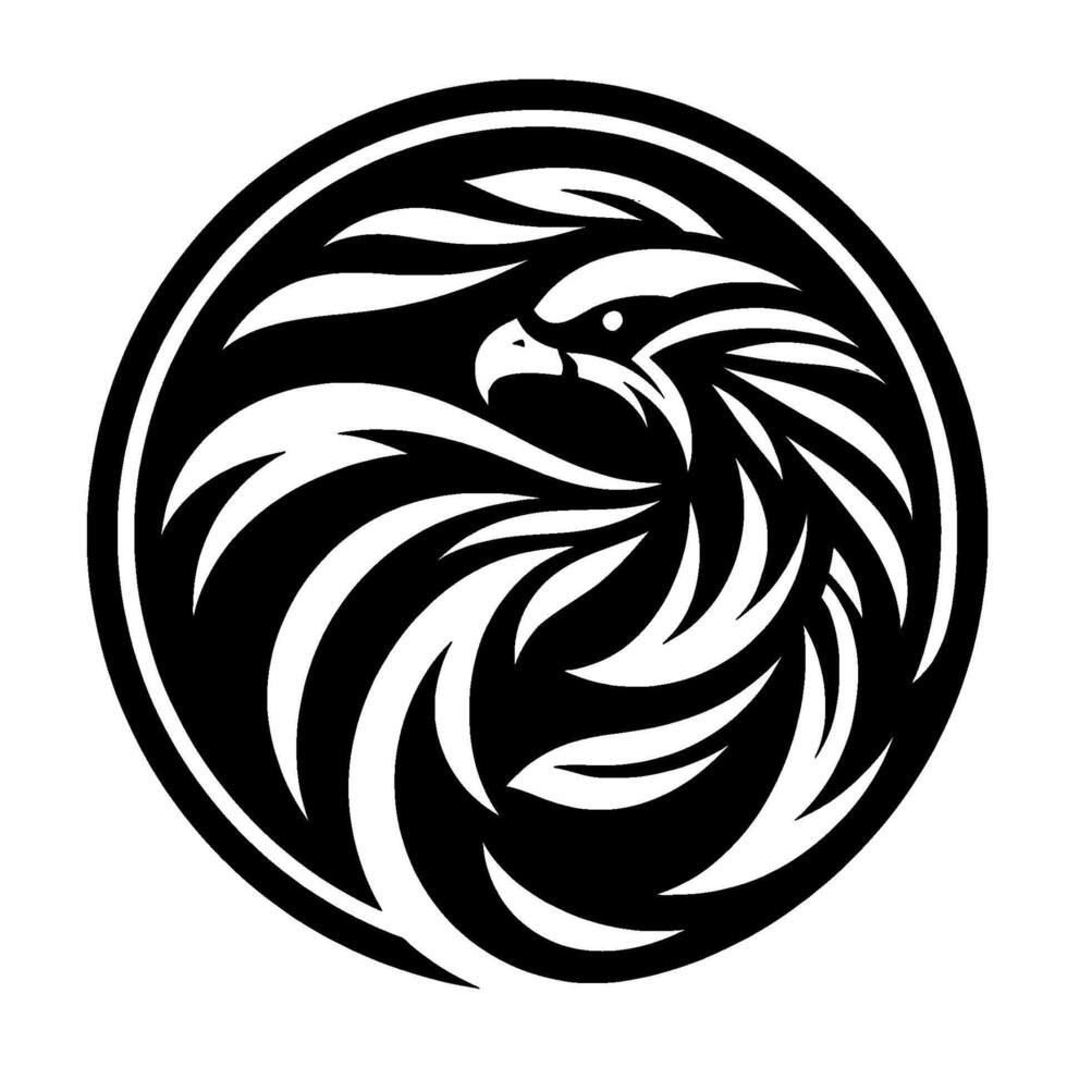 A stylized, monochrome eagle within a circle, featuring dynamic feather detailing and sharp lines, representing power. vector
