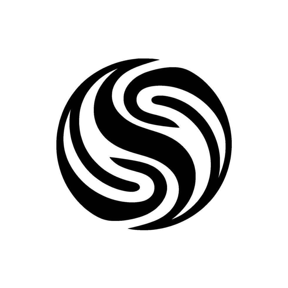 Abstract Black and White Swirling within a Sphere. resembling interlocking S shapes, smooth curves, and contrasting forms vector