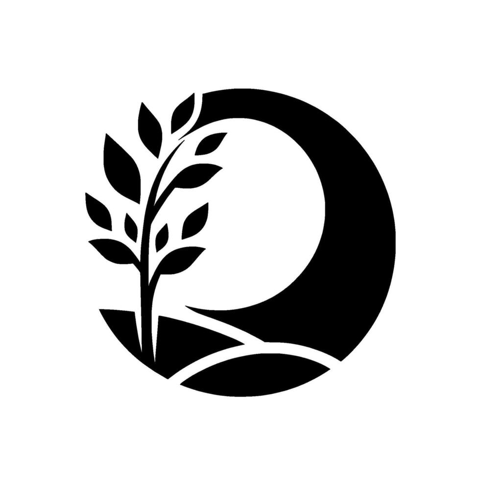A minimalist black and white featuring a stylized tree, nested within a circular shape, with a landscape element symbolizing growth and nature. vector