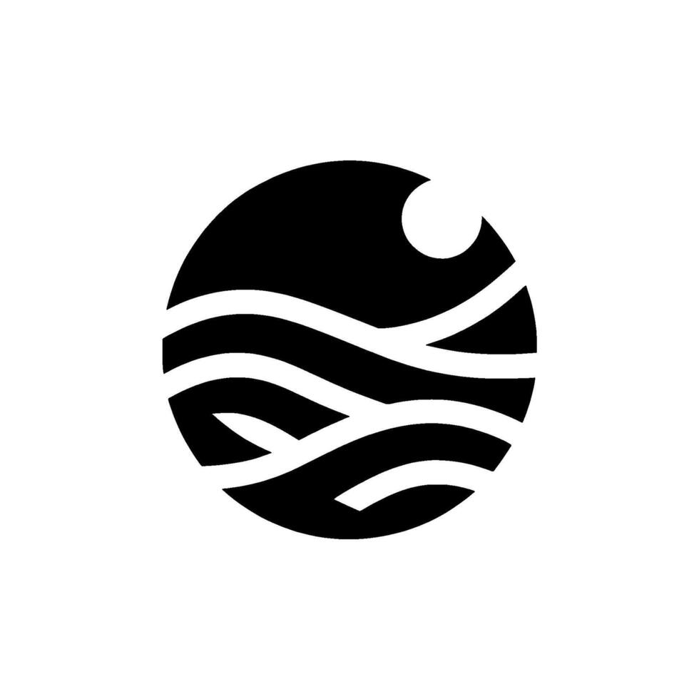 Abstract representing a circle with layered wavelike shapes and a white circular element suggestive of the sun or moon. A minimalistic that utilizes high contrast. vector