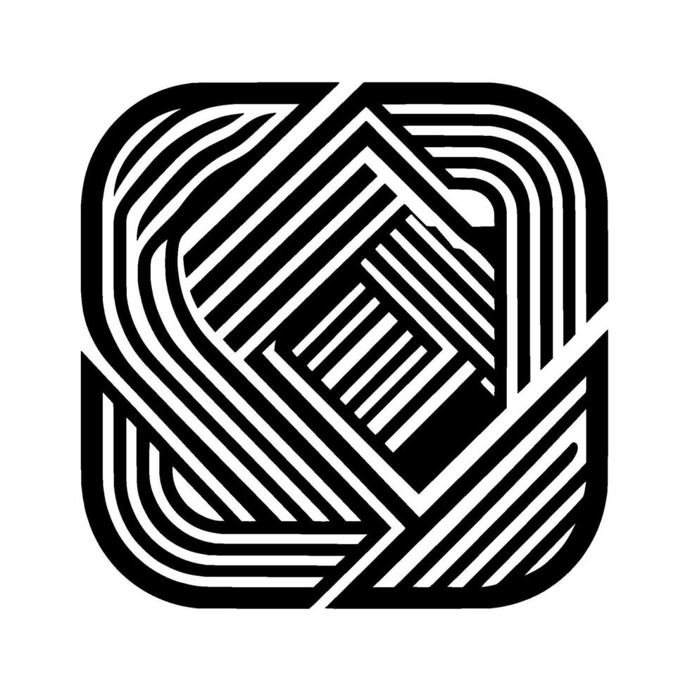 Geometric Abstraction Intricate Black and White Linear within a Rounded Square Frame Pro Vector
