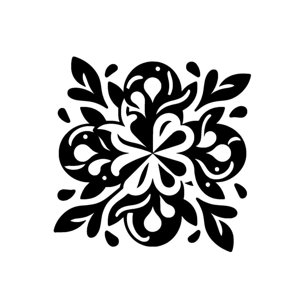 Symmetrical Floral Silhouette A Black and White Abstract , Featuring Leaves, Droplets, and Ornate, Repeating Patterns on a Bright Background. Pro Vector